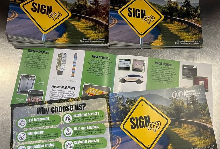 Printing is the final chapter of your story, where designs come to life and make a lasting impression. Through our partnership with Minuteman Press Milton, we offer premium printing solutions for business cards, flyers, postcards, and more—delivering exceptional quality at competitive prices. Let us help you bring your ideas off the screen and into the real world.